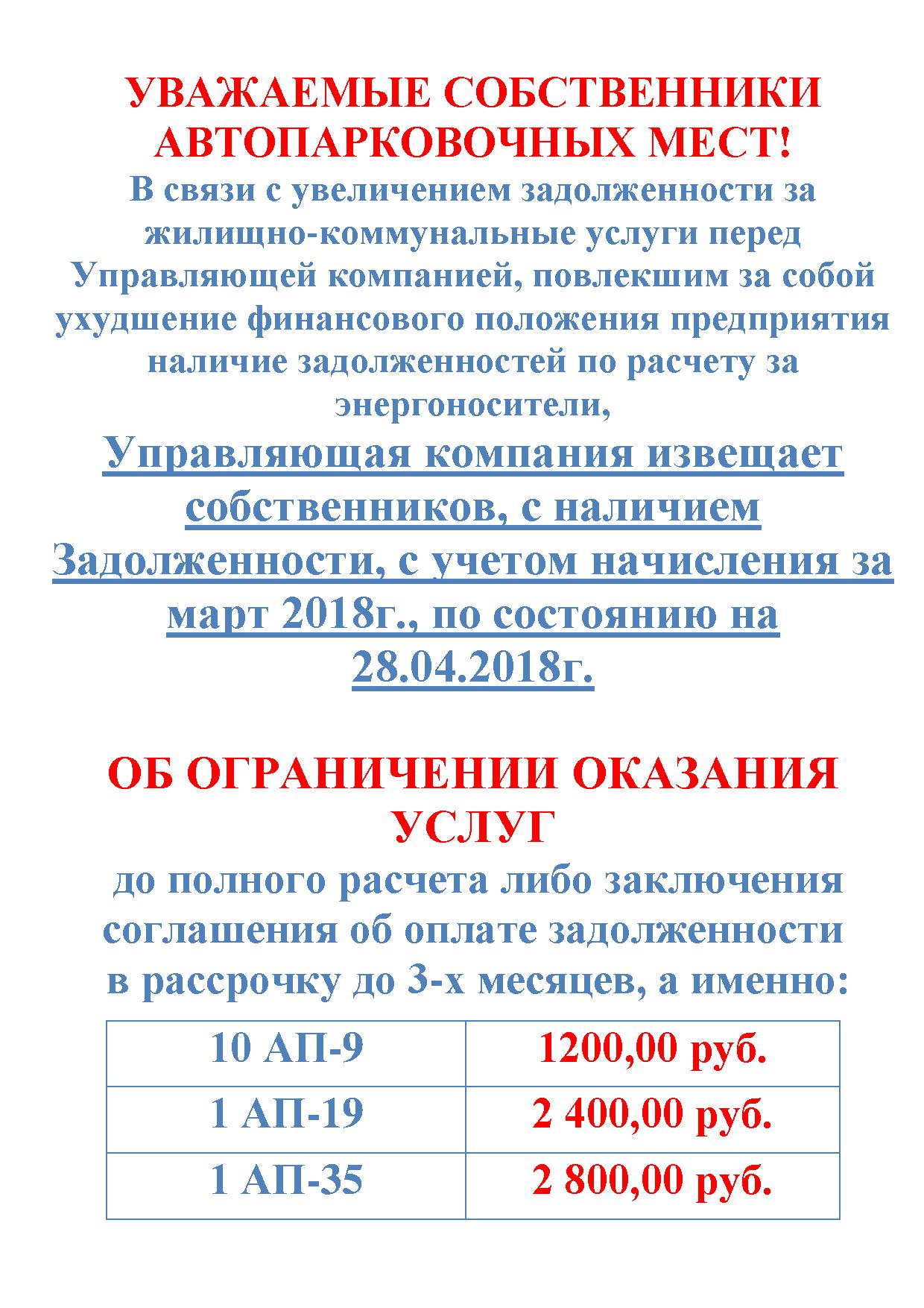 Уведомление собственникам ЗП "Еланчик" об ограничении оказания услуг по автопарковке