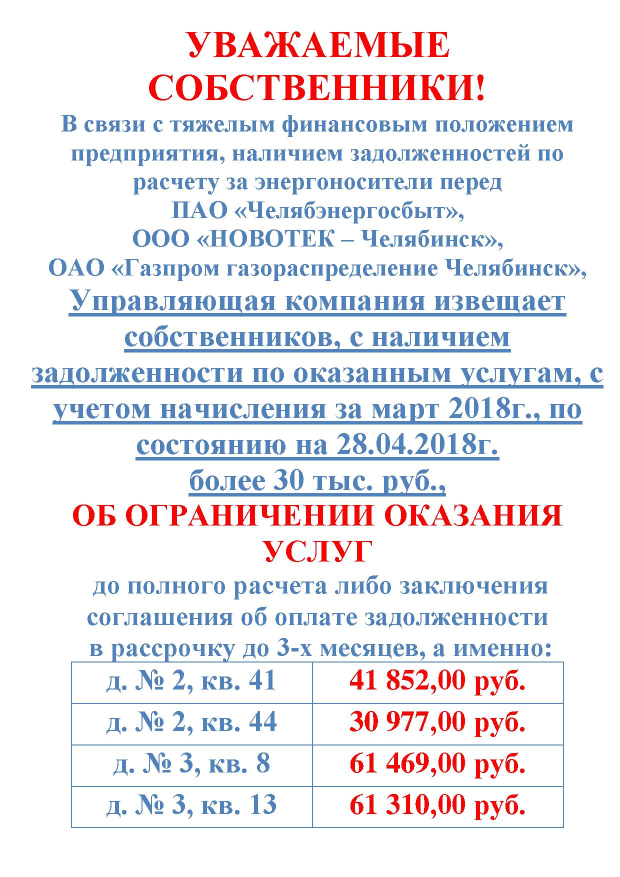 Уведомление собственникам ЗП "Еланчик" об ограничении оказания услуг