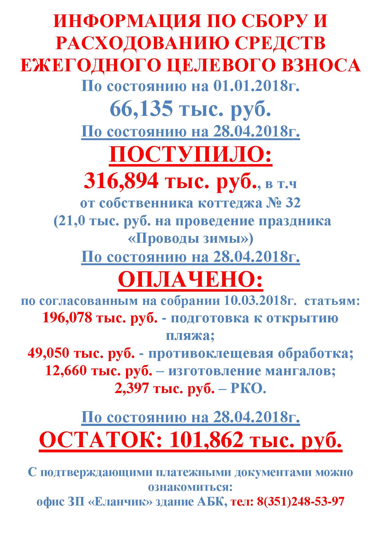 ИНФОРМАЦИЯ ПО СБОРУ И РАСХОДОВАНИЮ СРЕДСТВ ЕЖЕГОДНОГО ЦЕЛЕВОГО ВЗНОСА