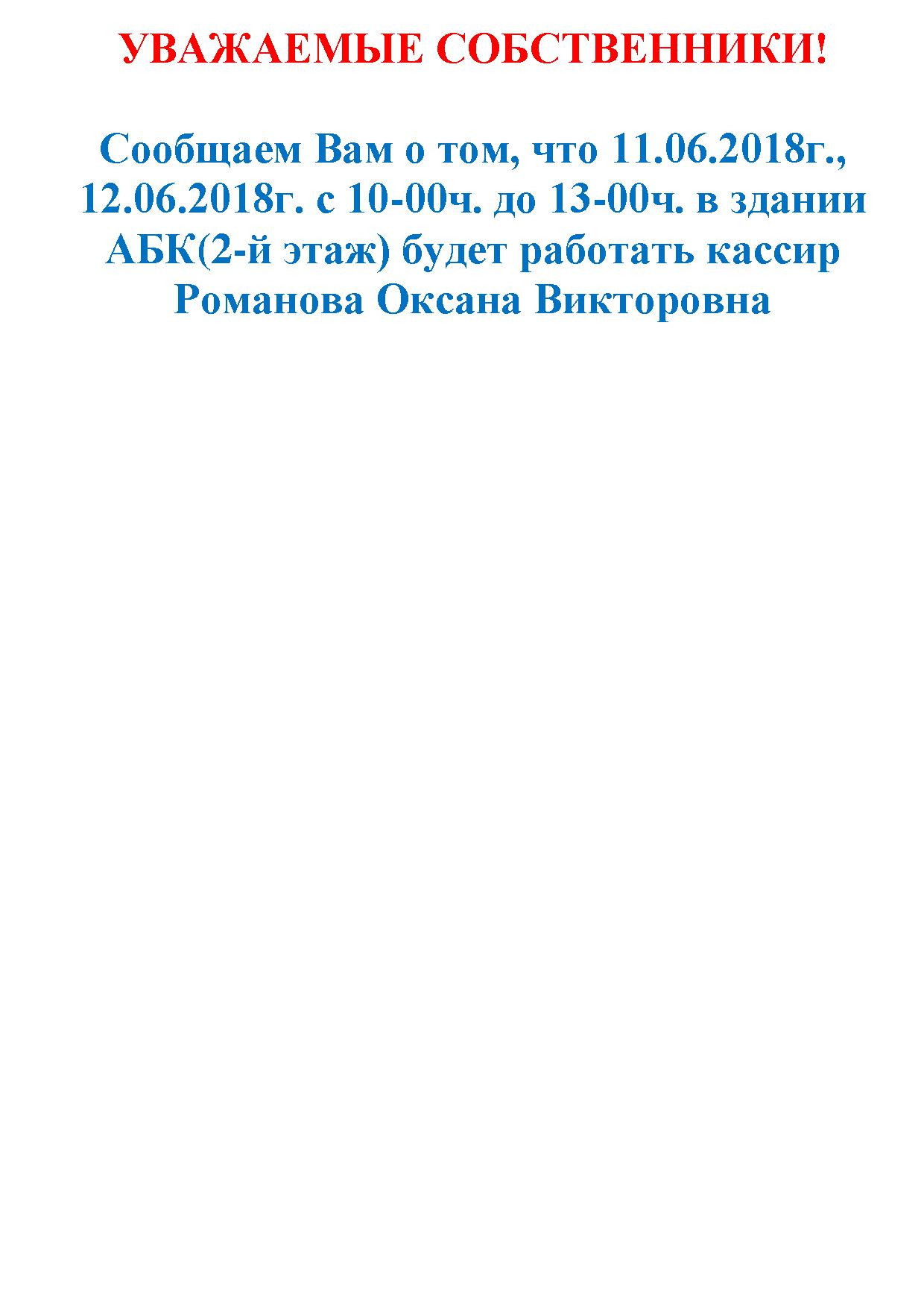 Сообщение о времени работы кассира ЗП "Еланчик" с 11.06.2018г. по 12.06.2018г.