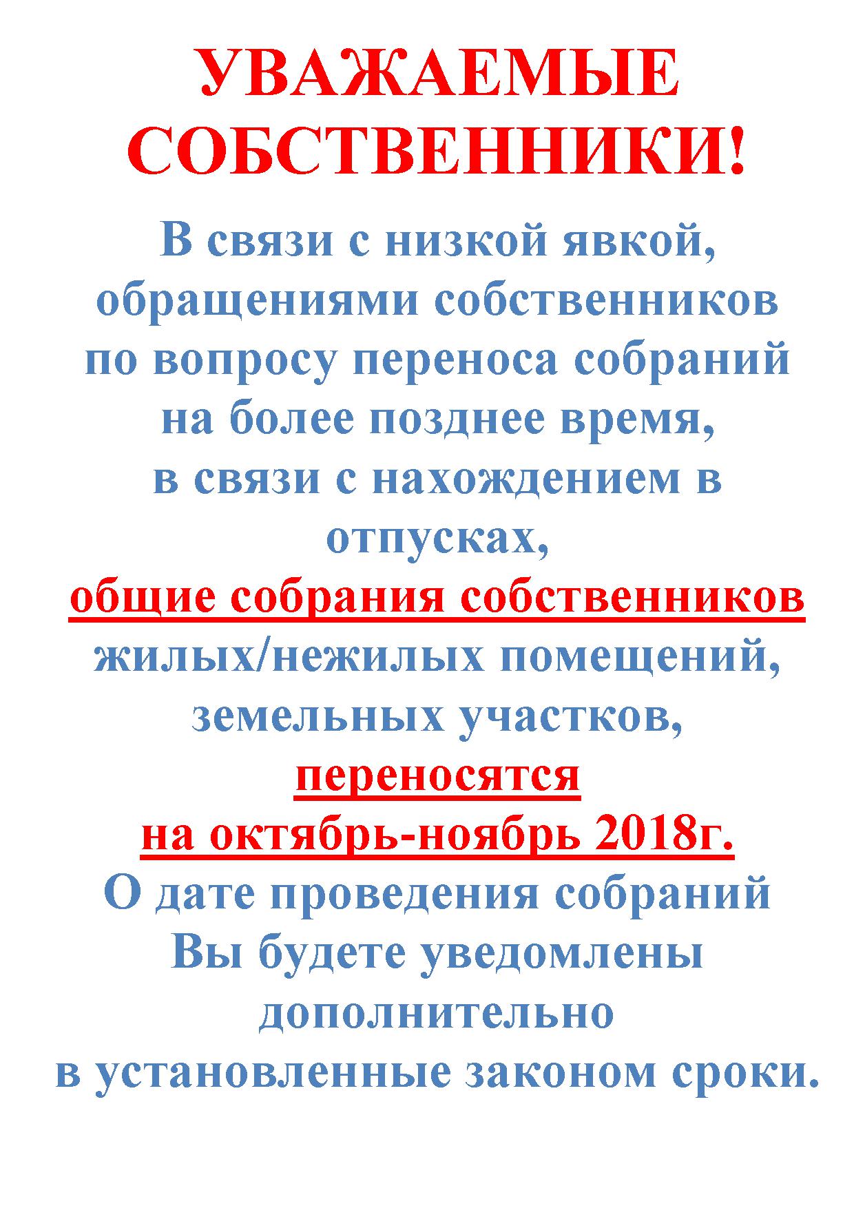 Сообщение собственникам по общим собраниям вназначенным в период с 26.07.2018г. по 31.08.2018г.