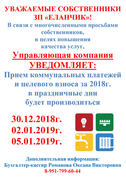 Уведомление о графике работы бухгалтера в Закрытом поселке "Еланчик" (Здание АБК) в праздничные дни