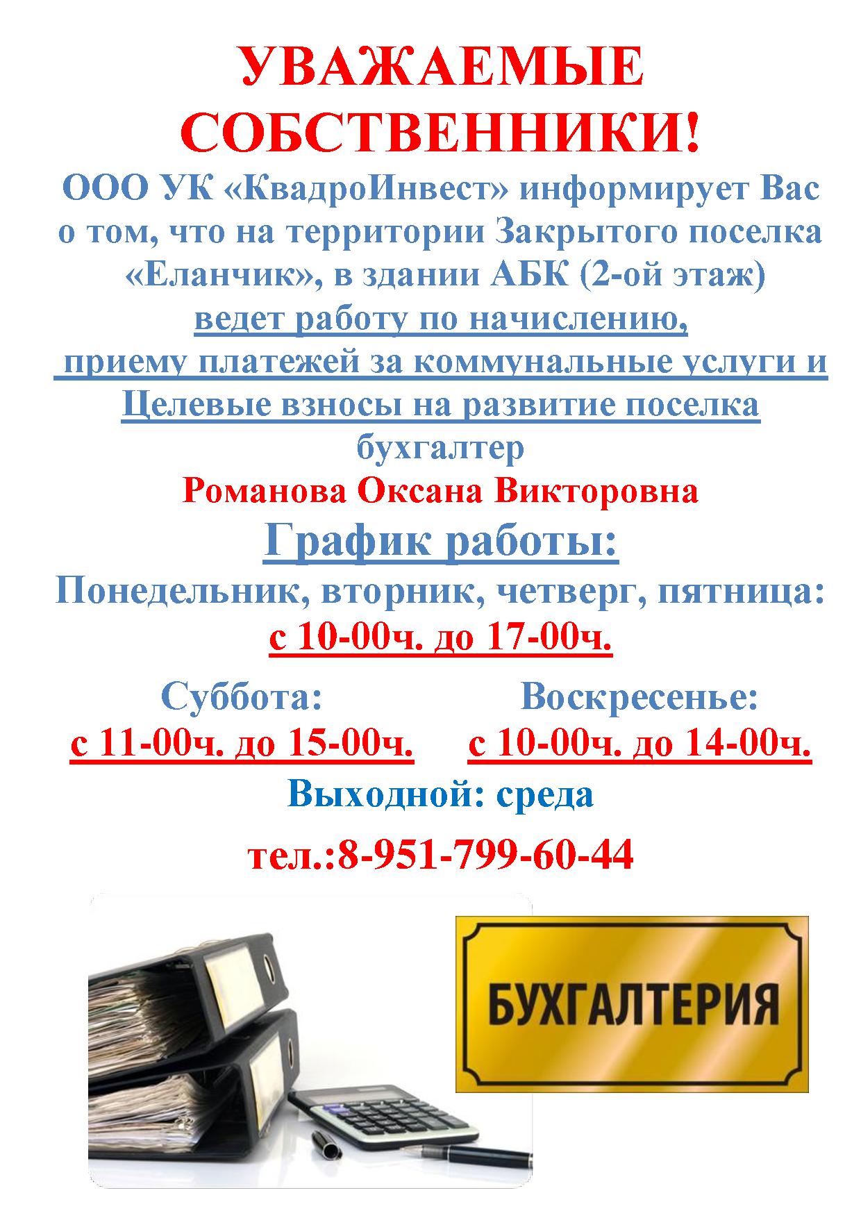 Объявление собственникам о графике работы бухгалтера в здании АБК