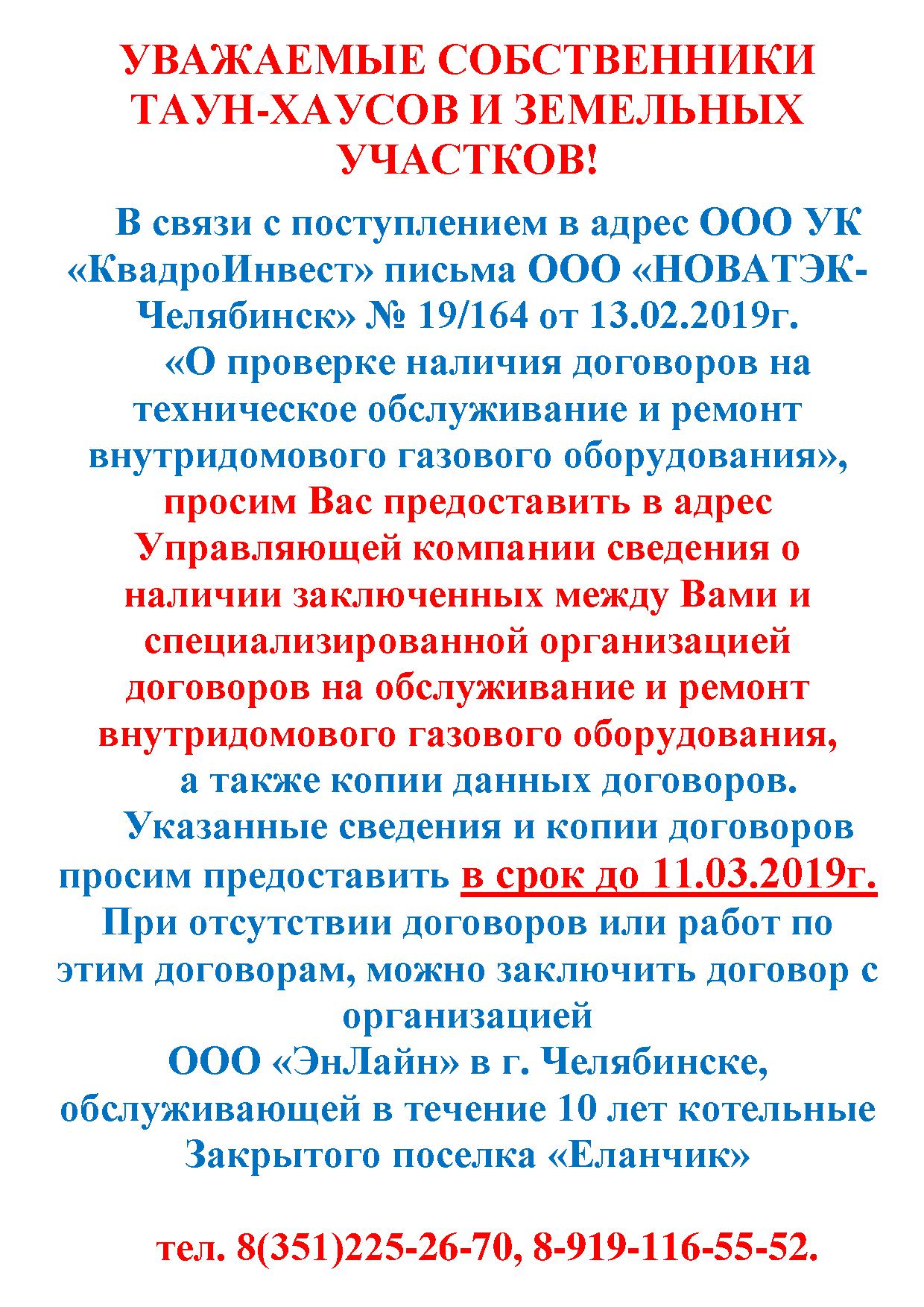 Сообщение собственникам таун-хаусов и земельных участков по Газу