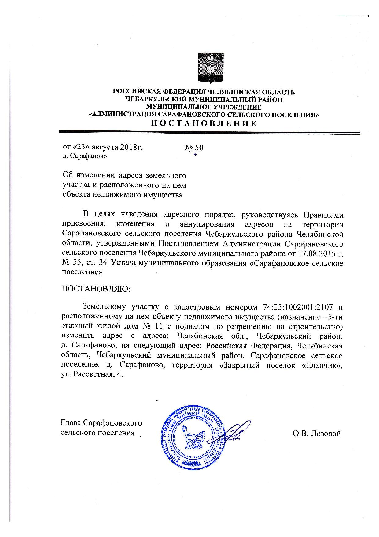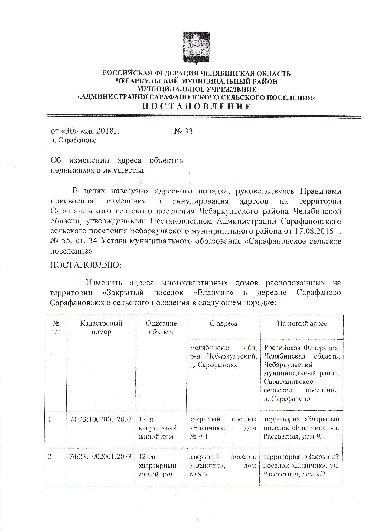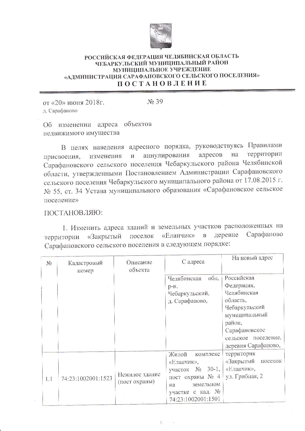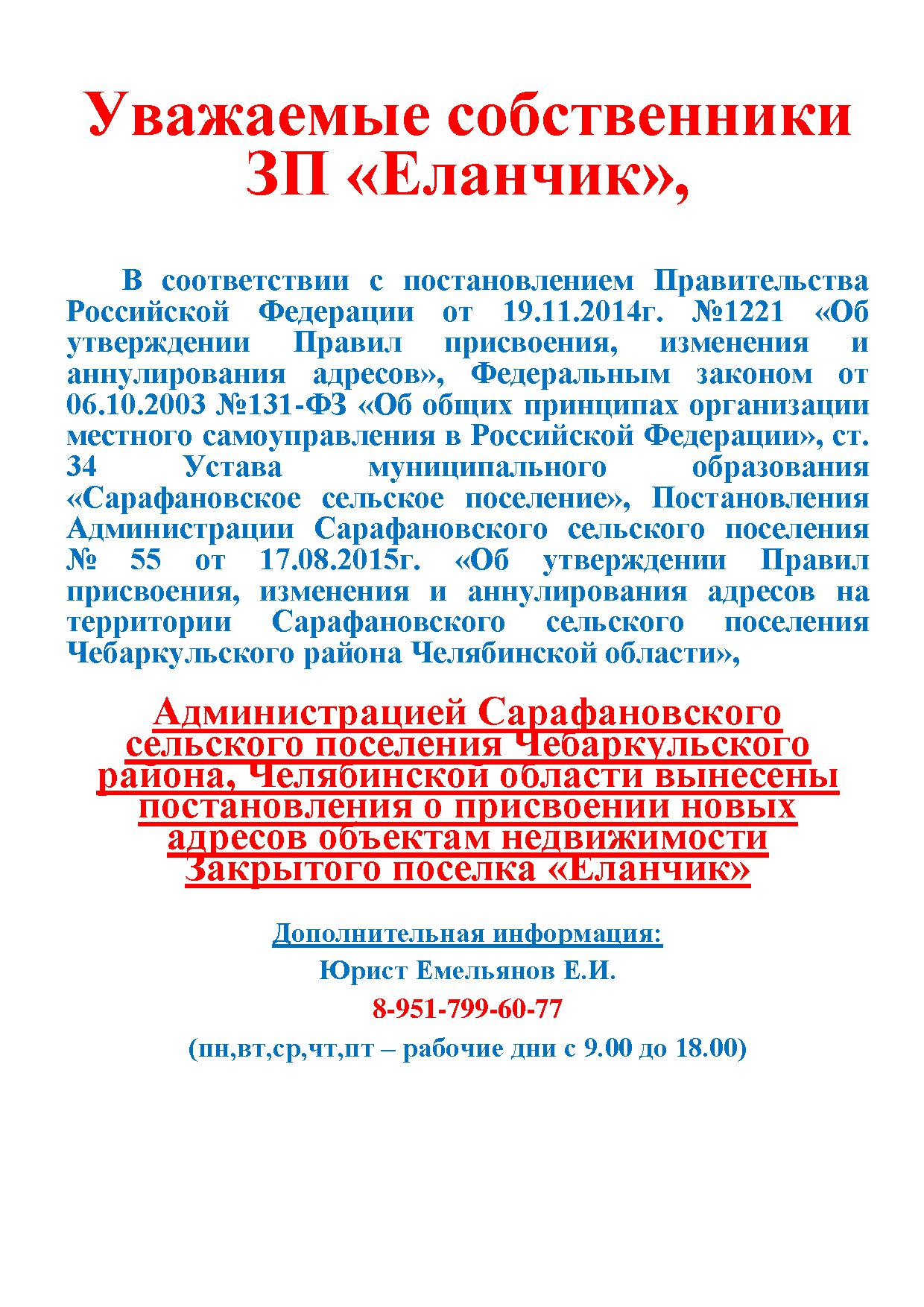 Сообщение собственникам об изменении адресов объектов недвижимости Закрытого поселка "Еланчик" с приложениями