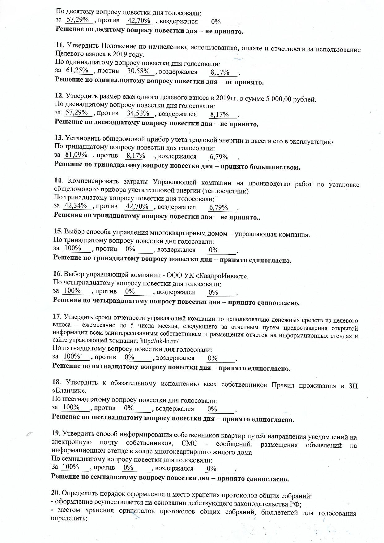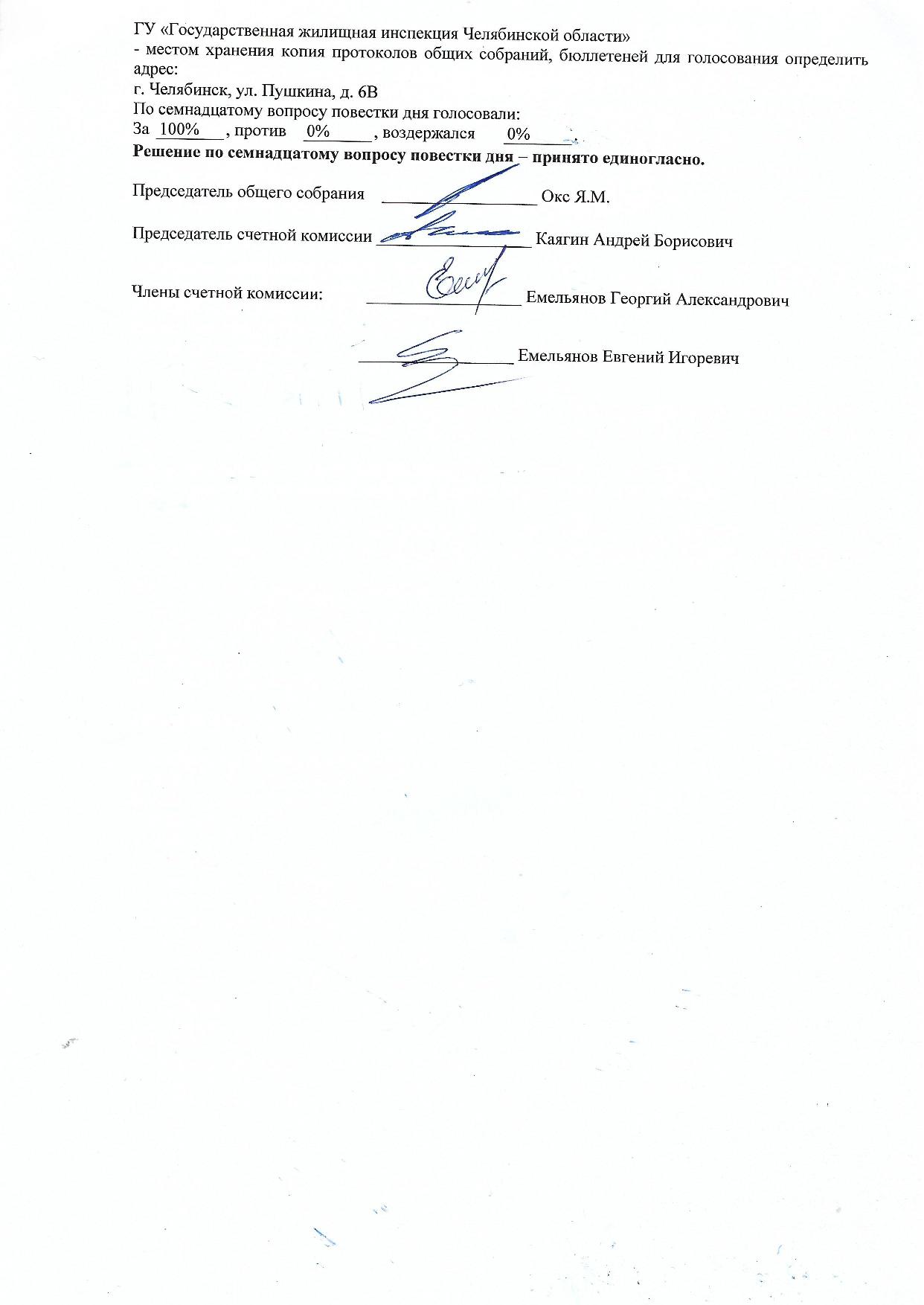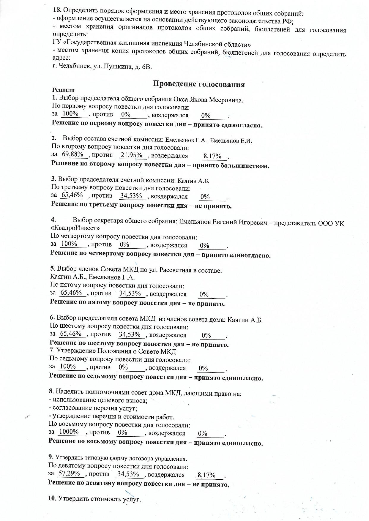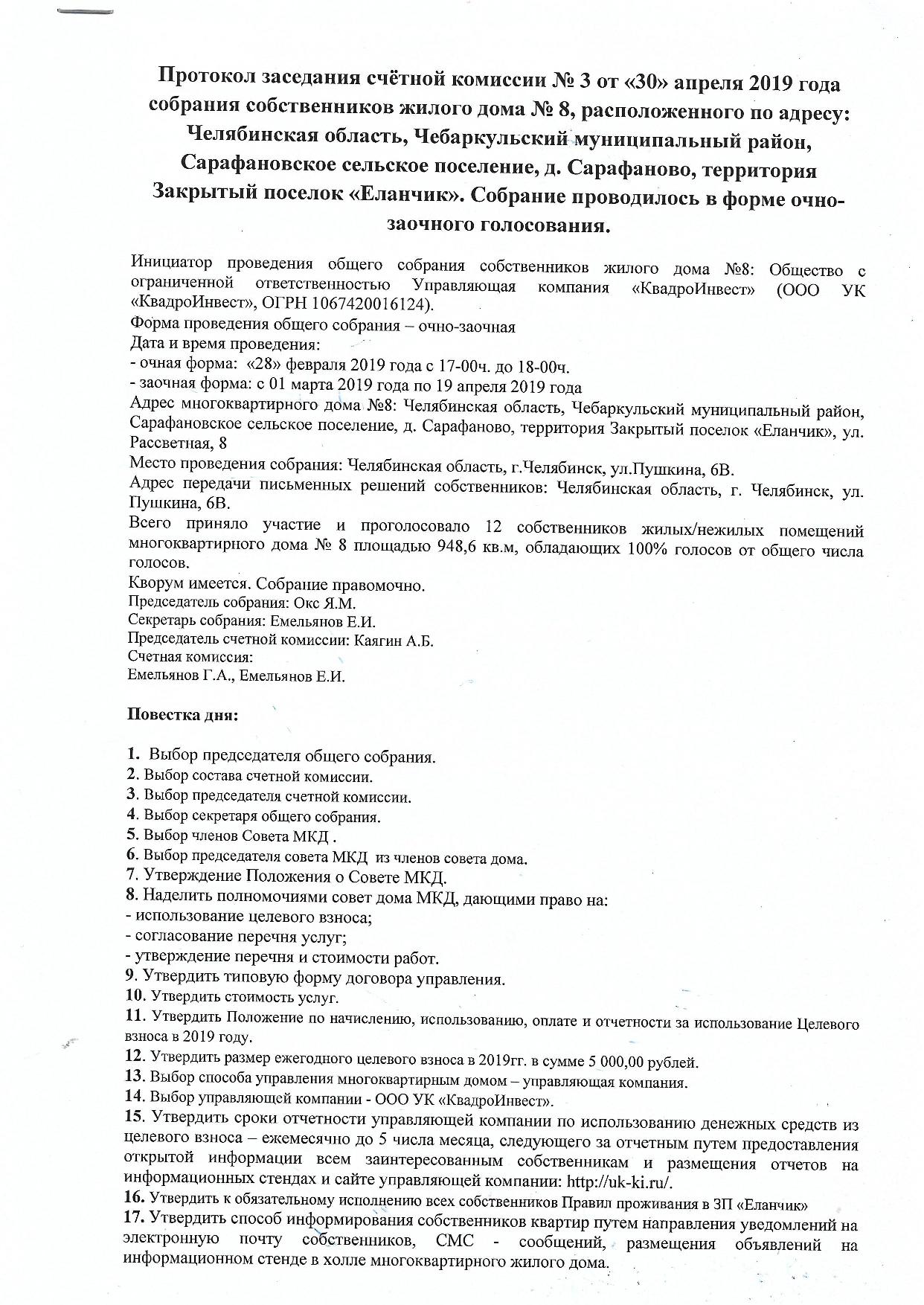 Результаты общего собрания собственников жилых/нежилых помещений многоквартирного дома 8, расположенного по адресу: Челябинская область, Чебаркульский муниципальный район, д. Сарафаново, тер. Закрытый поселок "Еланчик"