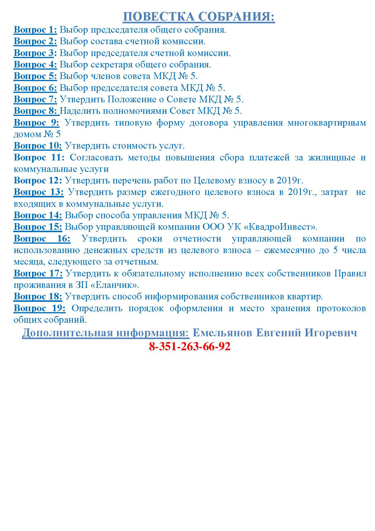 Сообщение о проведении общего собрания собственников д. 5 Закрытого поселка "Еланчик"