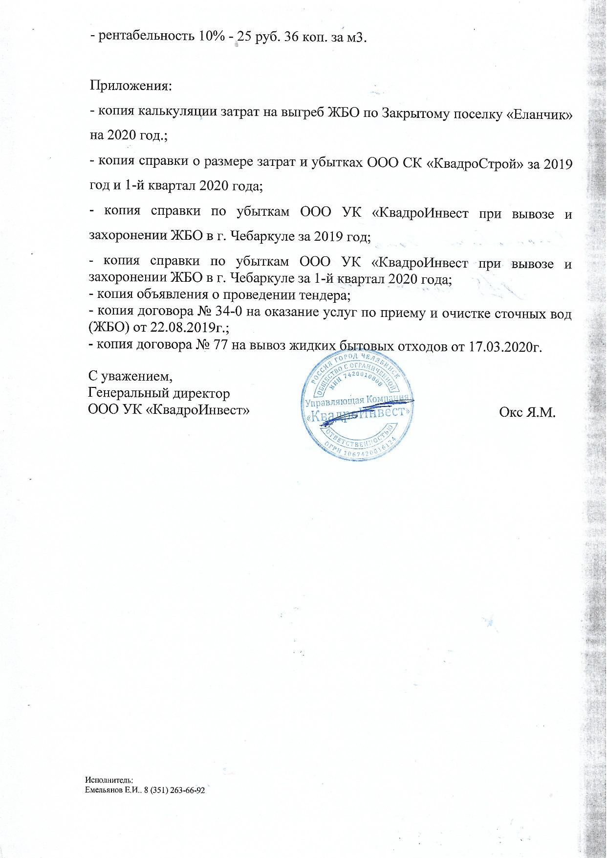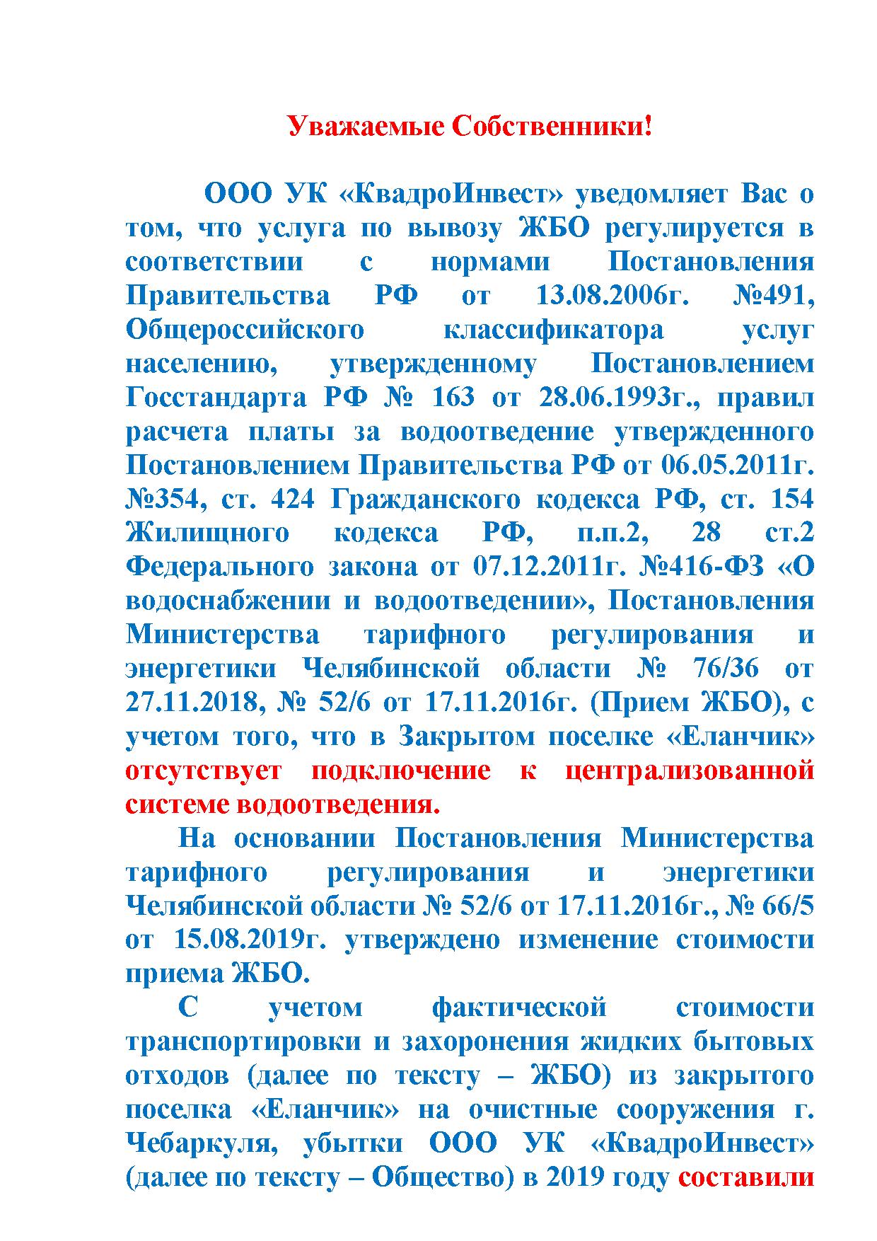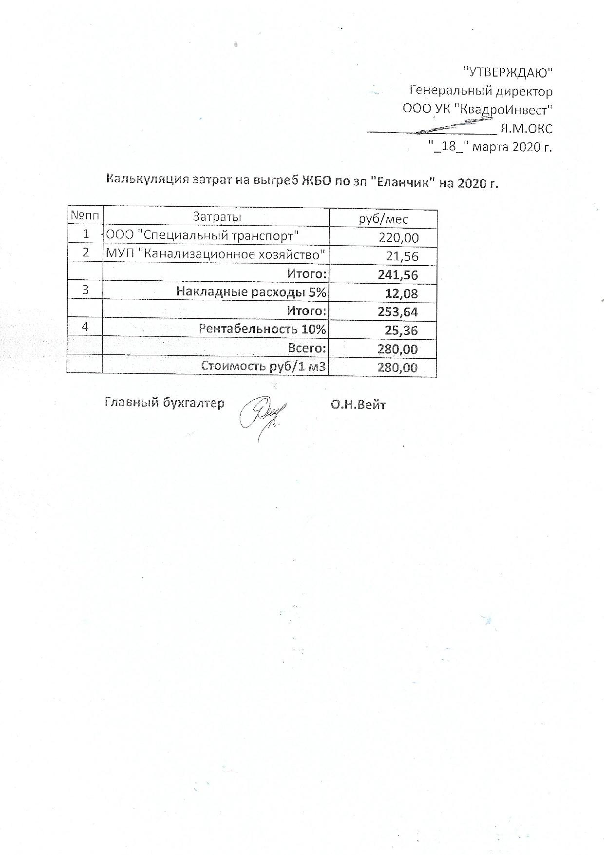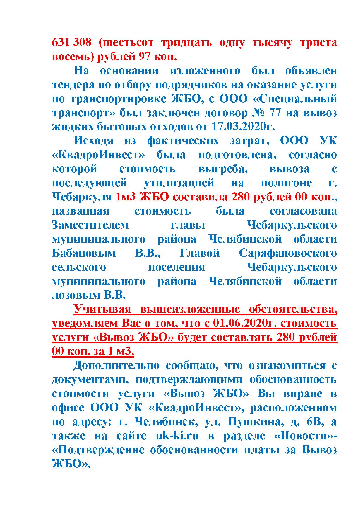 Подтверждение обоснованности платы за Вывоз ЖБО (Тариф действует с 01.06.2020г.)