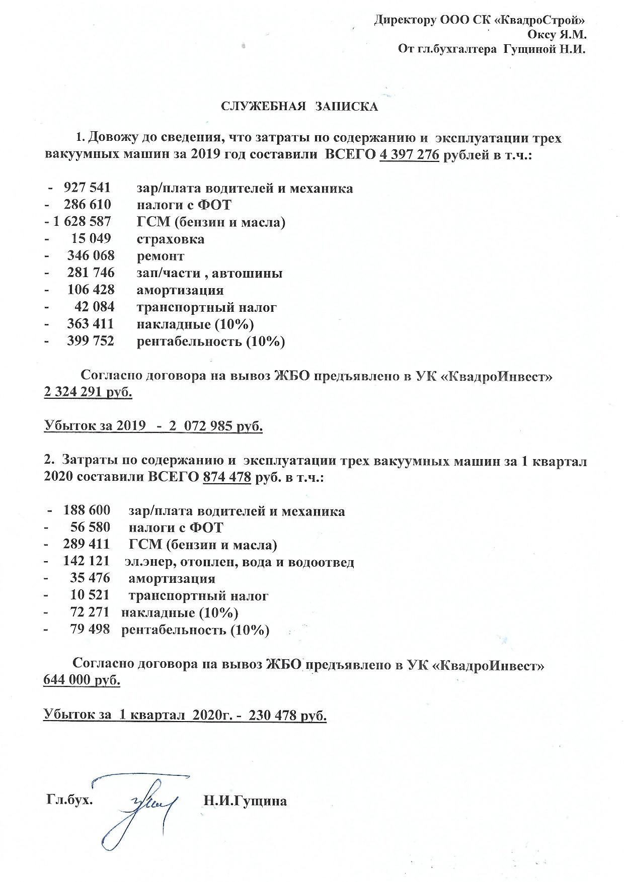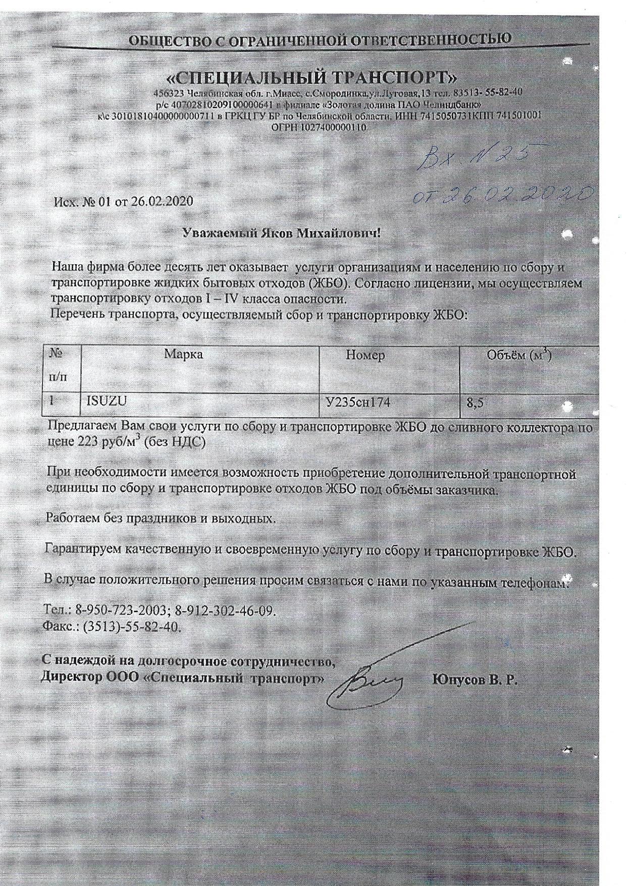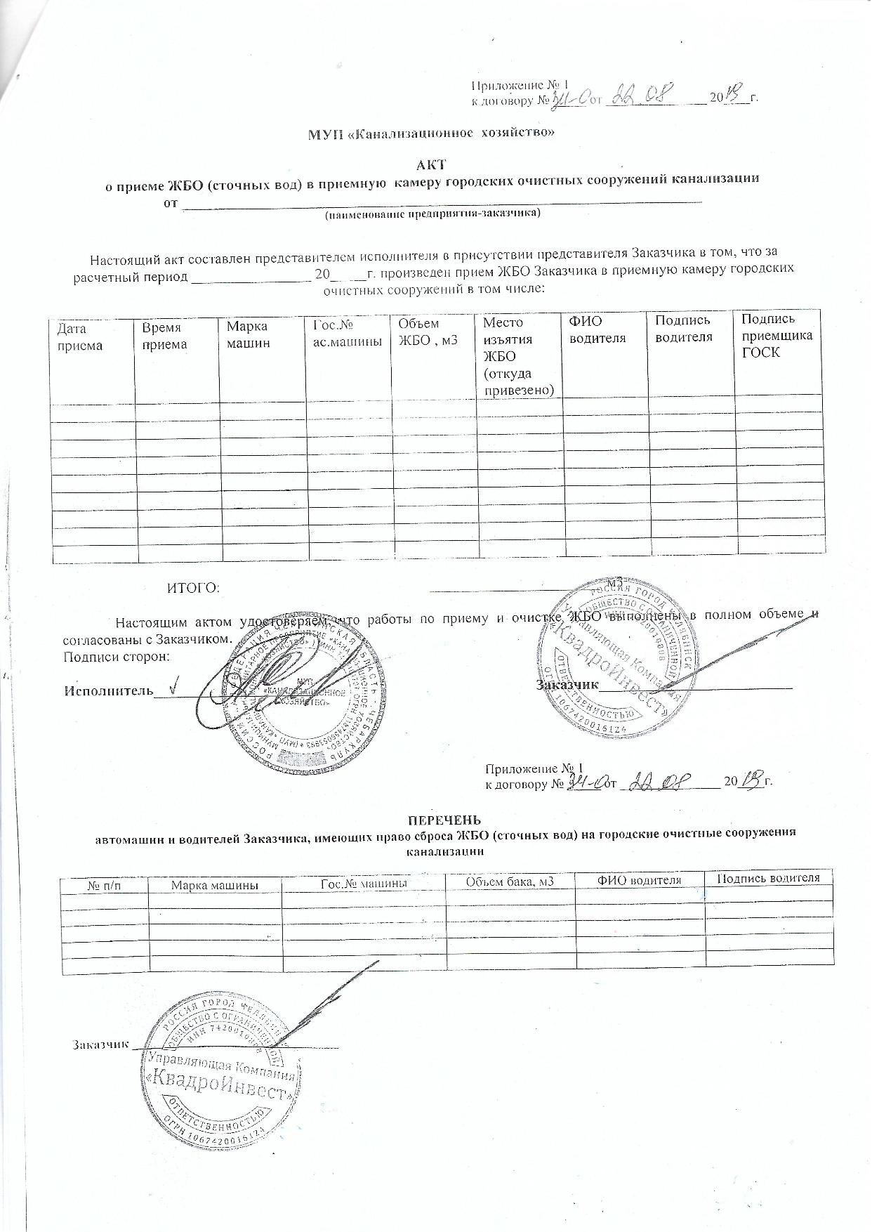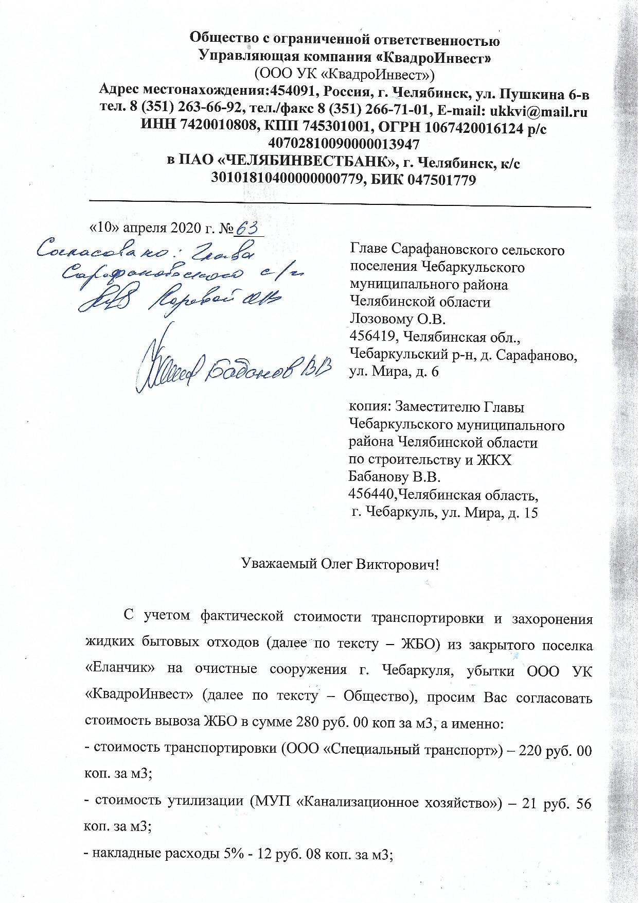 Подтверждение обоснованности платы за Вывоз ЖБО (Тариф действует с 01.06.2020г.)