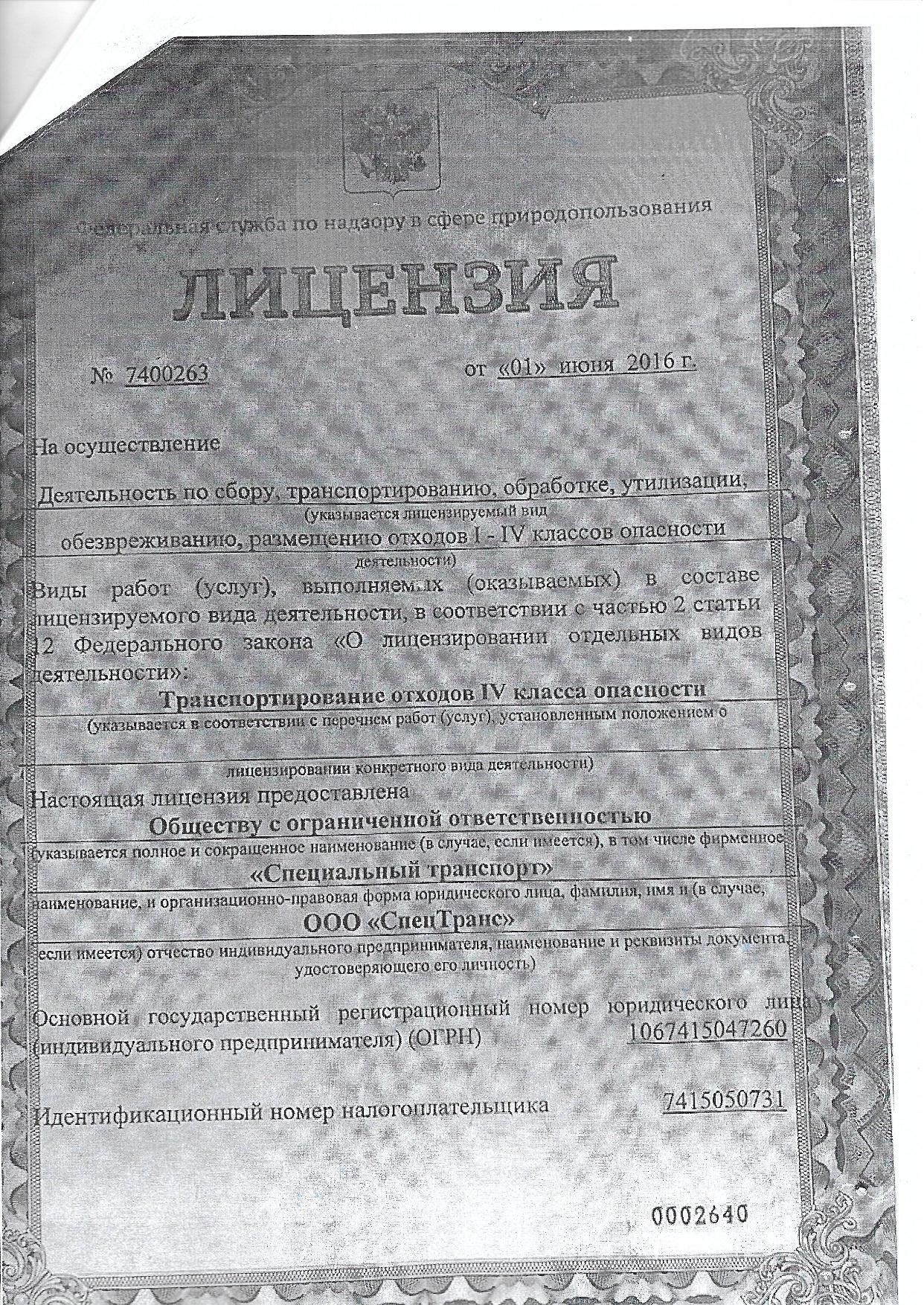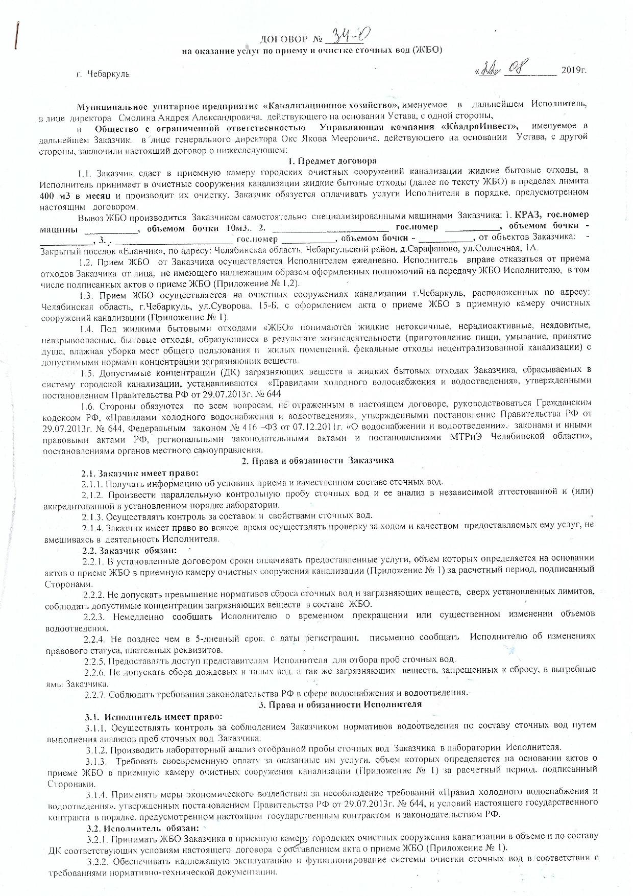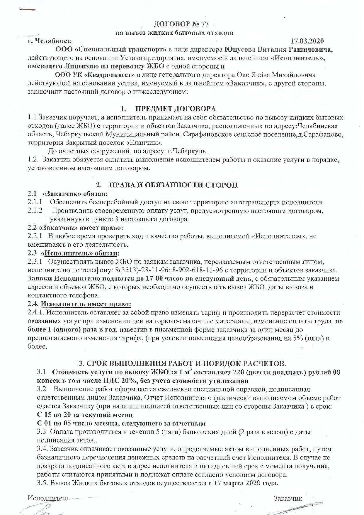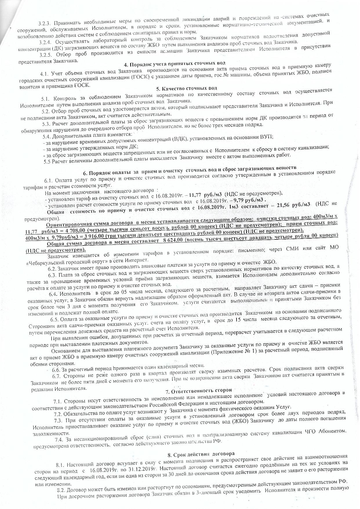 Подтверждение обоснованности платы за Вывоз ЖБО (Тариф действует с 01.06.2020г.)