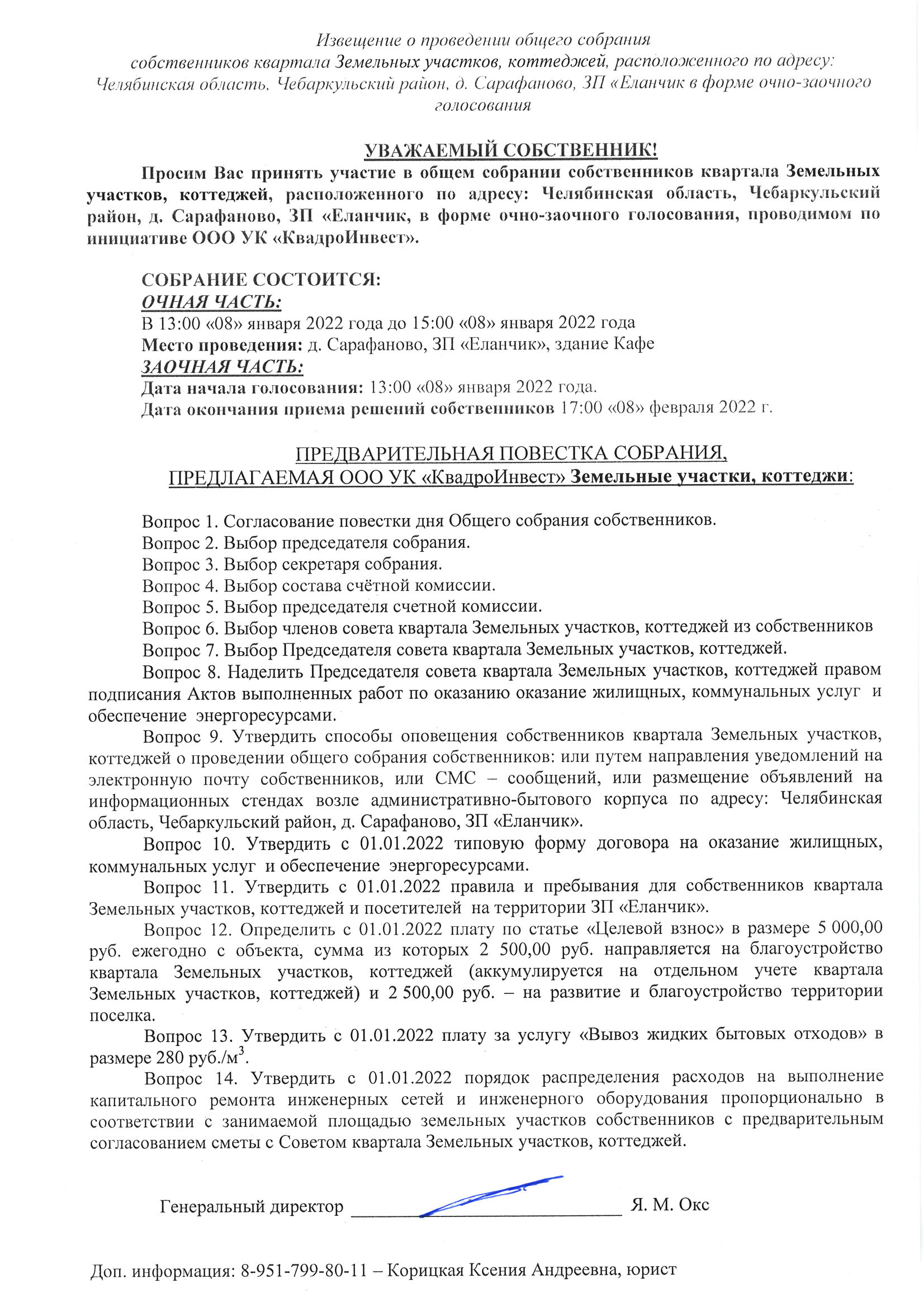 Сообщение о проведении собрания собственников Земельных участков, коттеджей