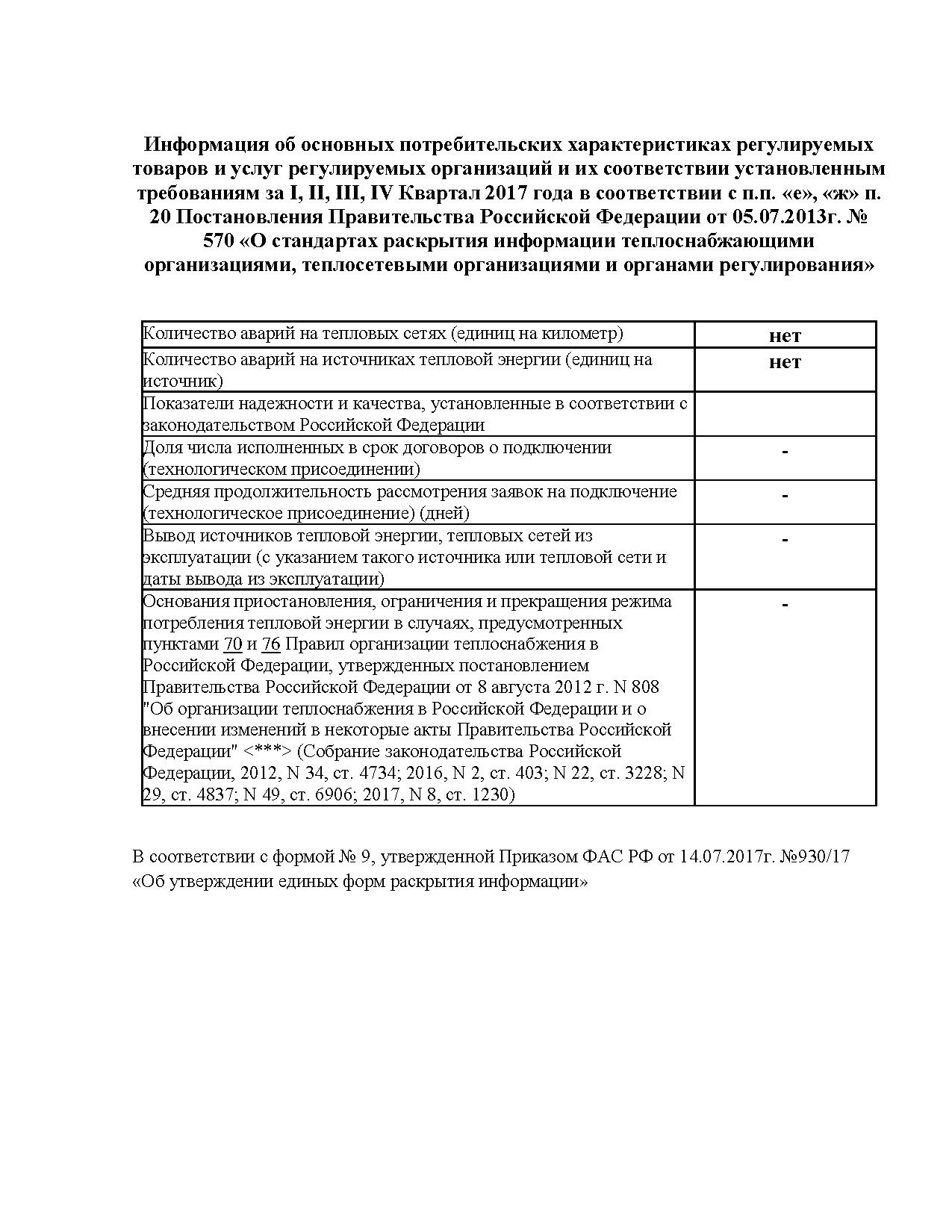 Информация об основных потребительских характеристиках регулируемых товаров и услуг регулируемых организаций и их соответствии установленным требованиям за I, II, III, IV Квартал 2017 года