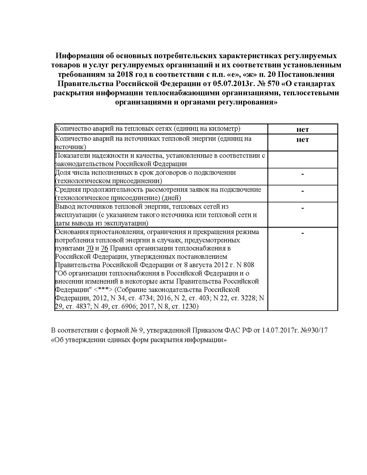 Информация об основных потребительских характеристиках регулируемых товаров и услуг регулируемых организаций и их соответствии установленным требованиям за 2018 год в соответствии с п.п. «е», «ж» п. 20 Постановления Правительства Российской Ф