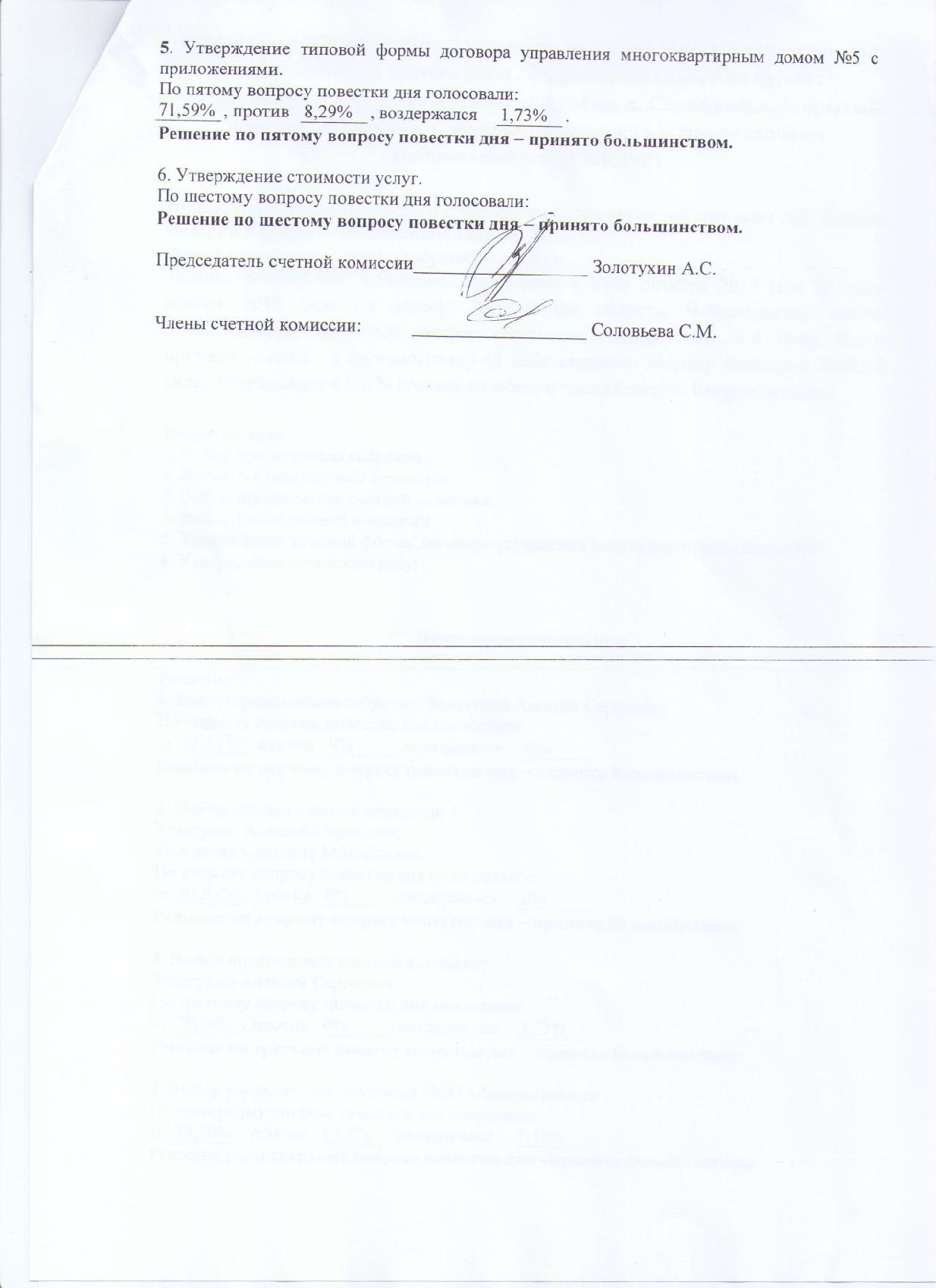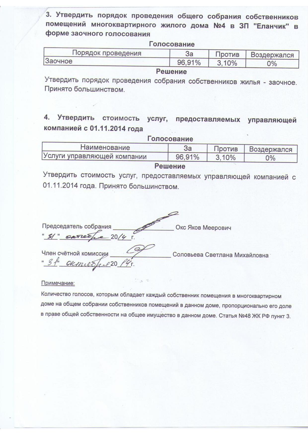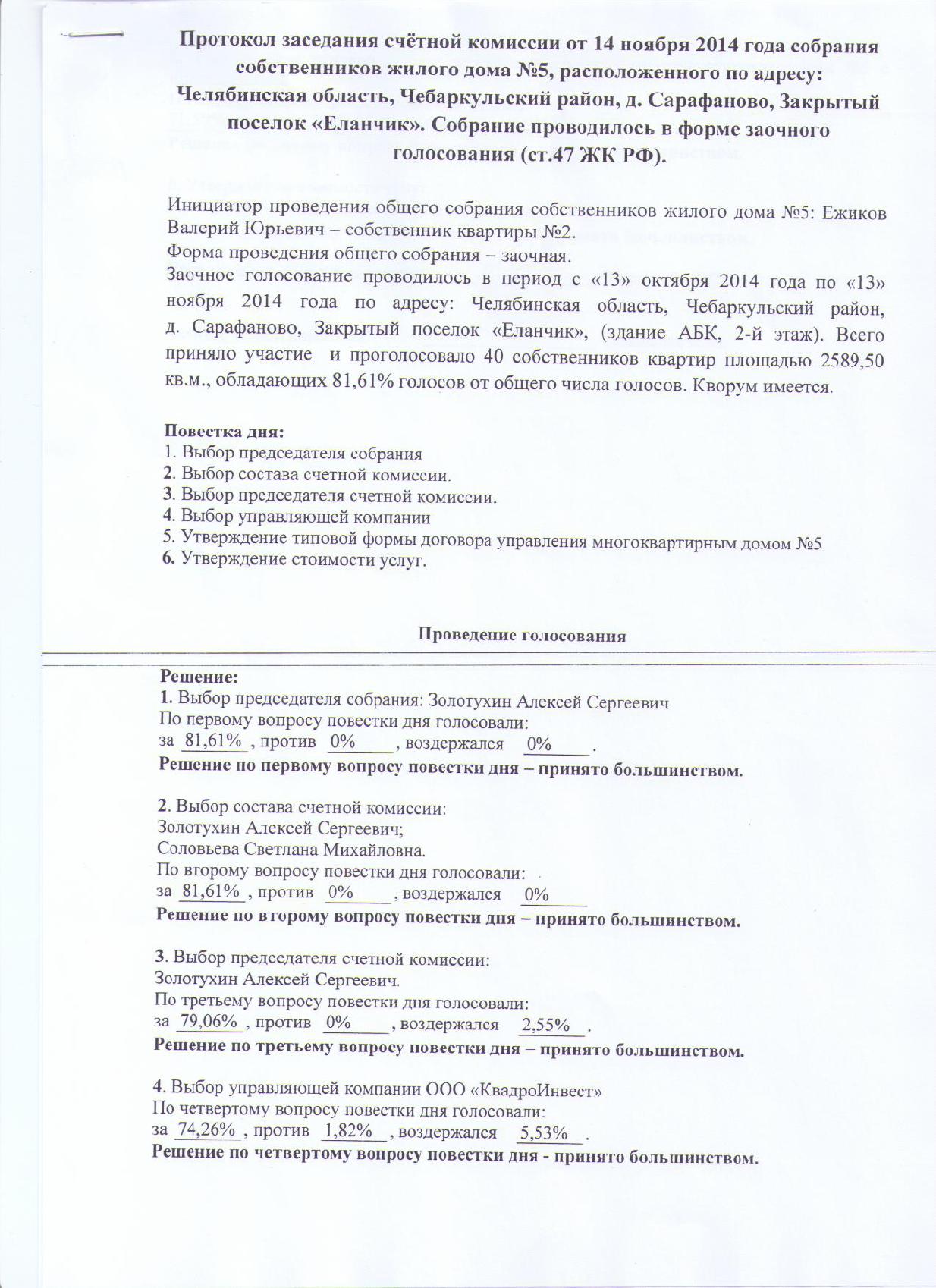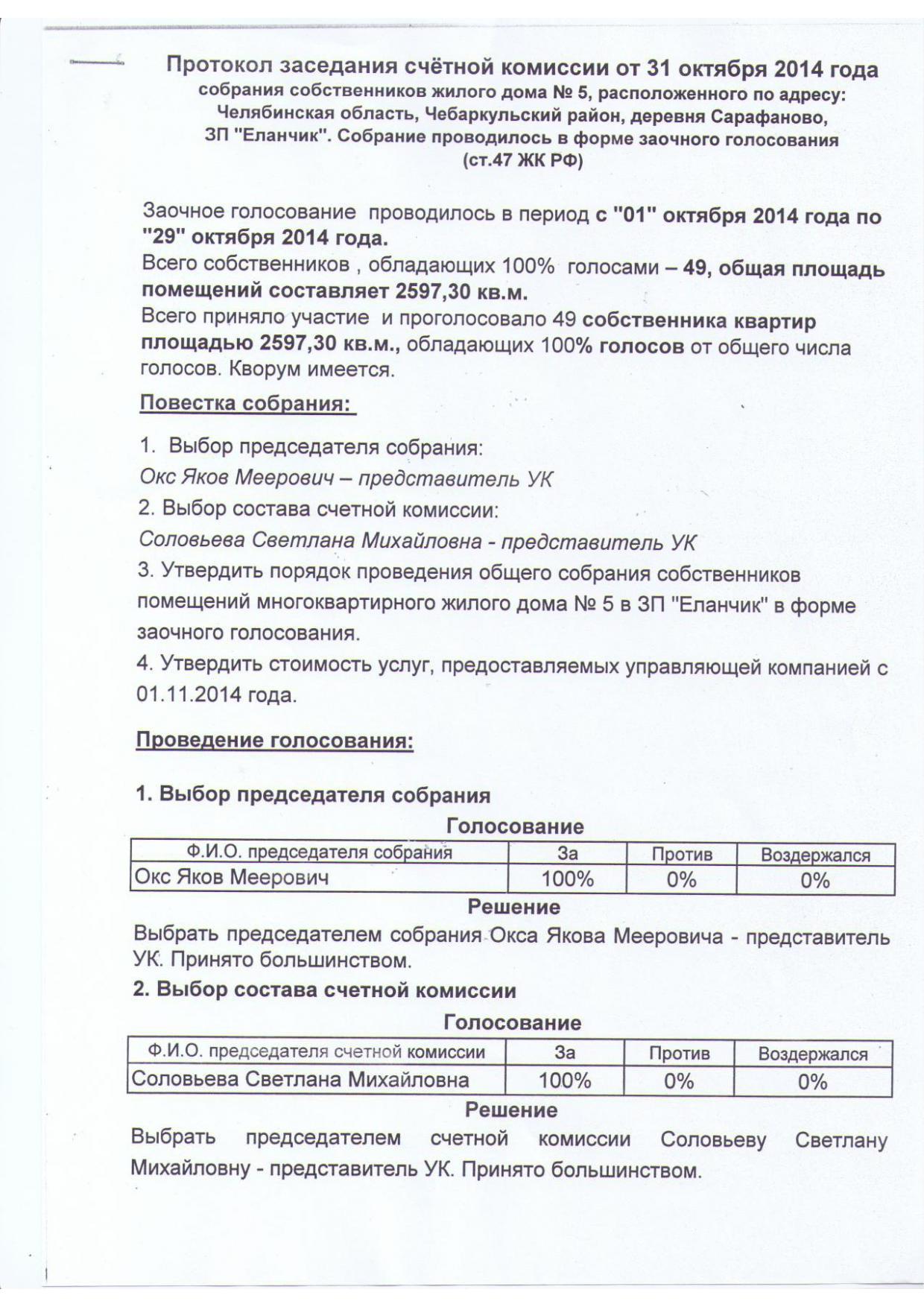Результаты общих собраний д. 5 Закрытого поселка "Еланчик"