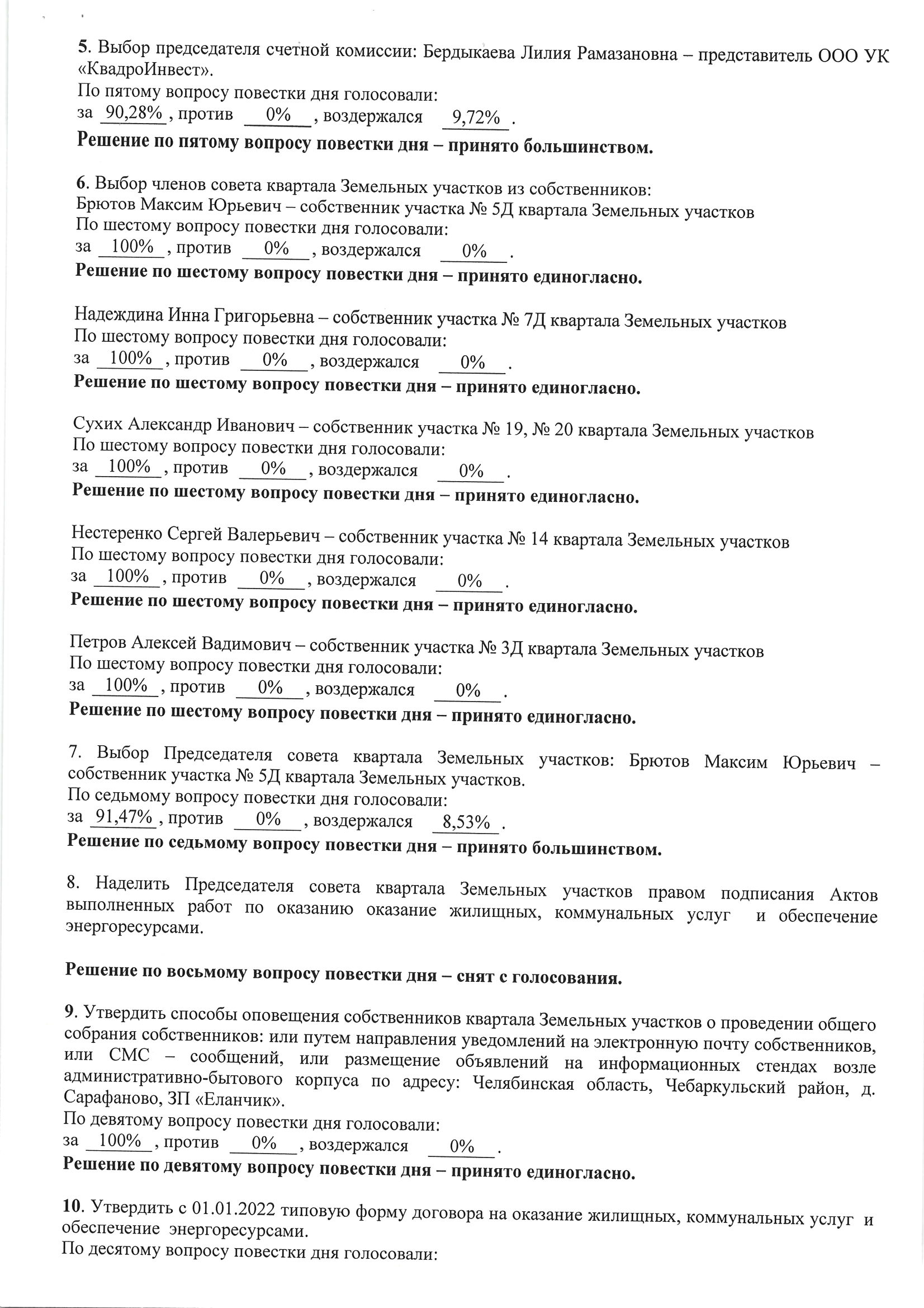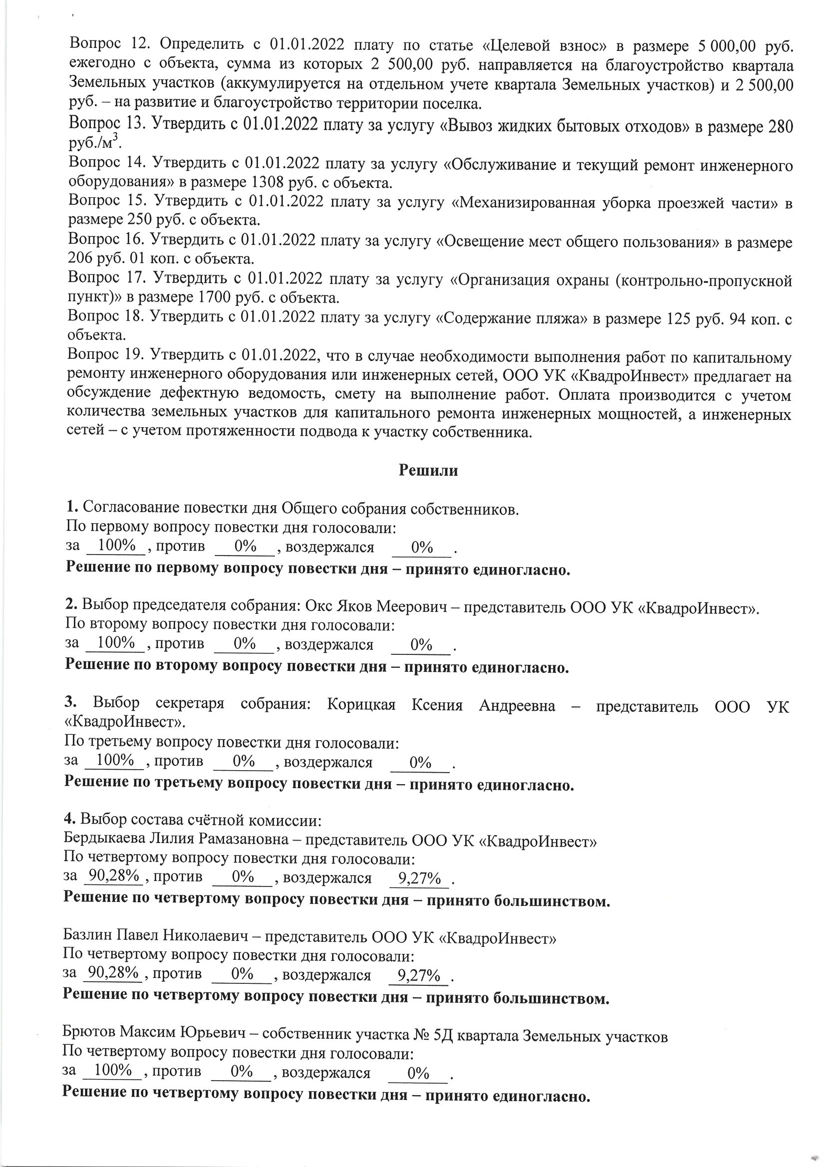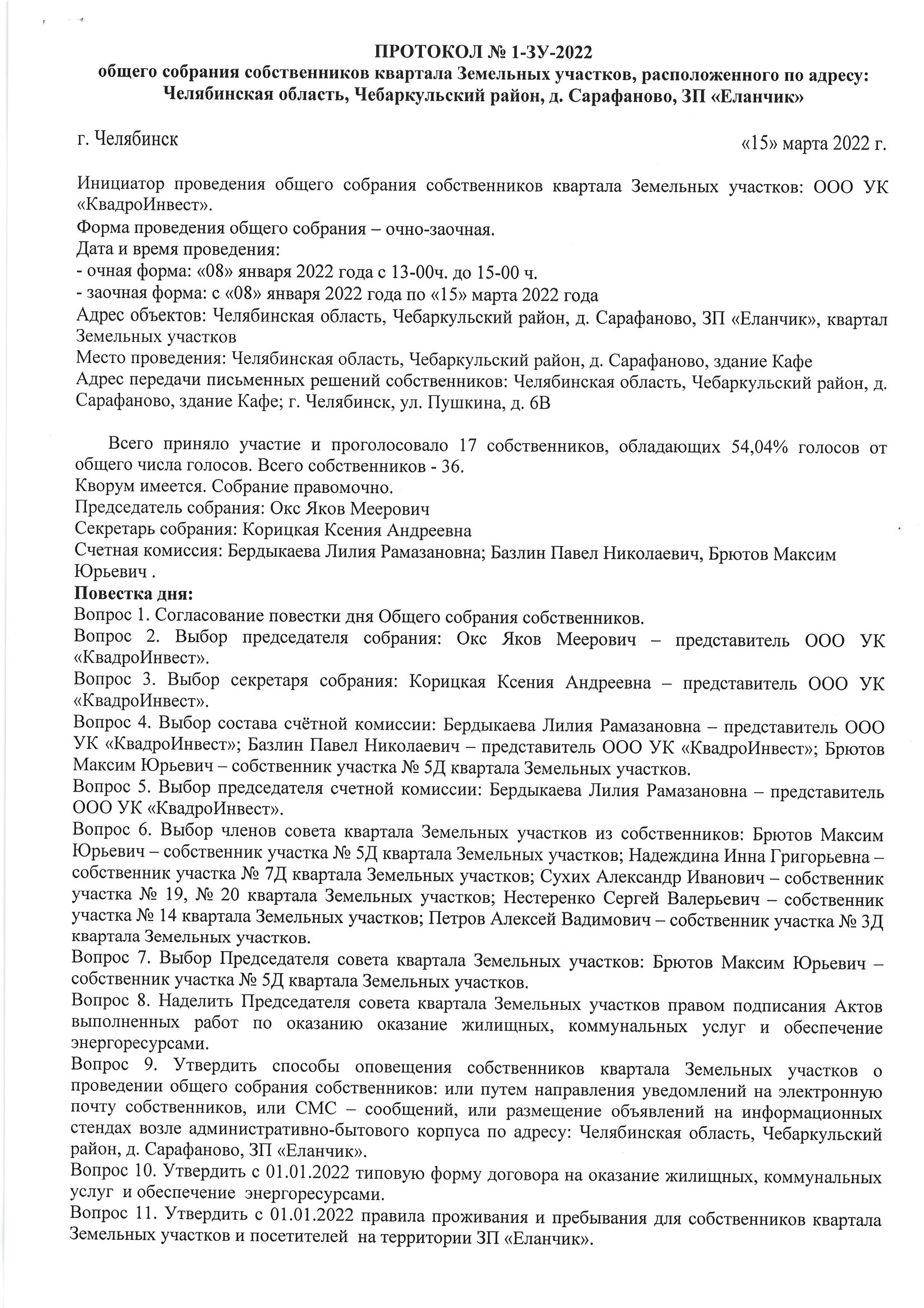 Протокол собрания собственников Земельных участков № 1-ЗУ-2022 от 15.03.2022